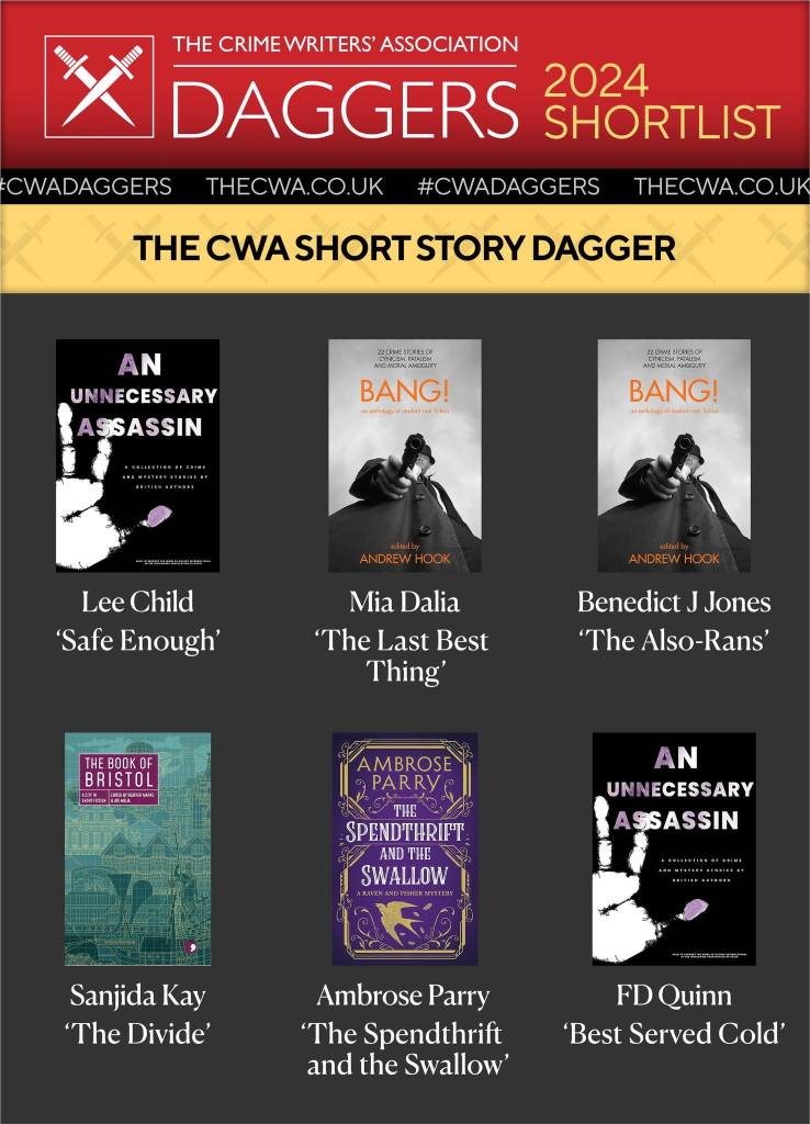 Pleased to report that two stories from our anthology, “Bang!”, have made it to the shortlist for the Crime Writer’s Association Short Story Dagger award for 2024!